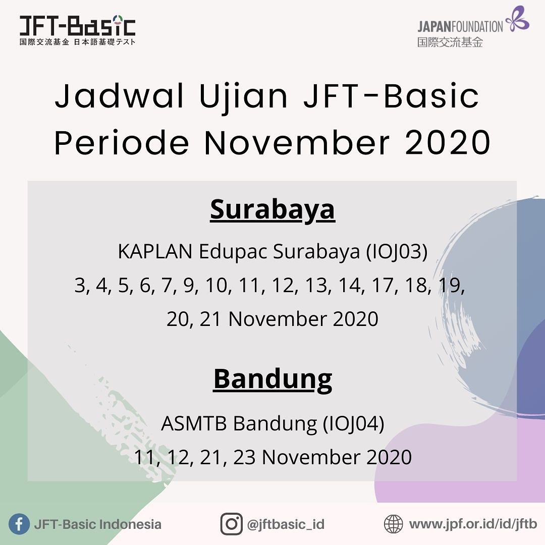 Di bawah ini merupakan contoh soal untuk mengetahui seperti apa jenis soal yang disajikan pada ujian kemampuan bahasa jepang praktis jtest. Daftar 360 soal tentang tata bahasa, kosakata, dan kanji untuk 30 hari. Untuk memaksimalkan penguasaan terhadap huruf kanji yang terdapat pada buku irodori, the japan foundation jakarta juga telah membuat berbagai soal latihan . Video ini berisi tentang contoh soal jft basic a2 yang bersumber dari marugoto. Pendaftaran ujian yang telah dibuka: